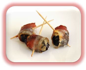 Envuelve la ciruela pasa con la tocineta y ciérrala con ayuda del palillo. Cuando tengas la cantidad que necesitas colócalos en una bandeja para horno y hornea a 250ºC por 5 minutos.