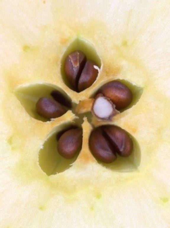 Las manzanas, se vinculan con las deidades, con la inmortalidad, la resurrección y el conocimiento. Una razón es que si se corta una manzana por la mitad, en sentido horizontal, muestra una estrella de cinco puntas, símbolo de la Diosa entre los gitanos, los celtas y los egipcios.