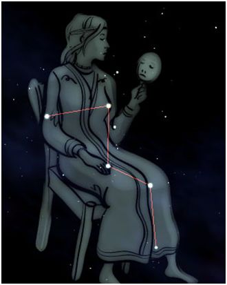 En la mitología, había muchos modos de alcanzar un lugar entre las estrellas. Se podían realizar hazañas heroicas, o sufrir una gran tragedia. También podía lograrse por medios menos heroicos. Un ejemplo es Casiopea, la reina. Casiopea llegó al cielo debido a su vanagloria.