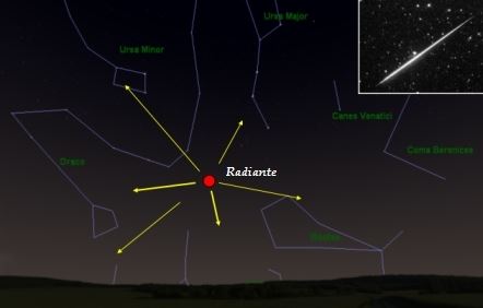 La lluvia de meteoros se conoce como la de los Cuadrántidas. Lleva el nombre de la extinta constelación Cuadrans Muralis, en honor de un antiguo instrumento astronómico. Parece que los meteoros «llueven» en la atmósfera de la Tierra desde esa dirección –debajo de los pies del actual Hércules.