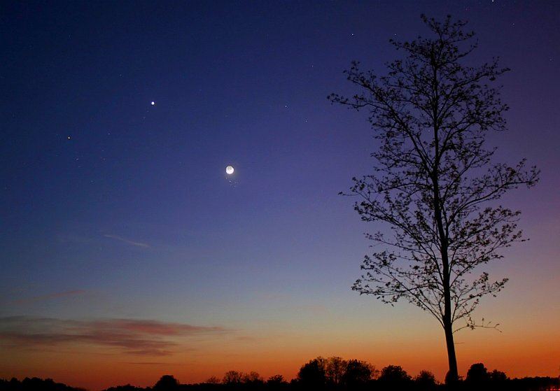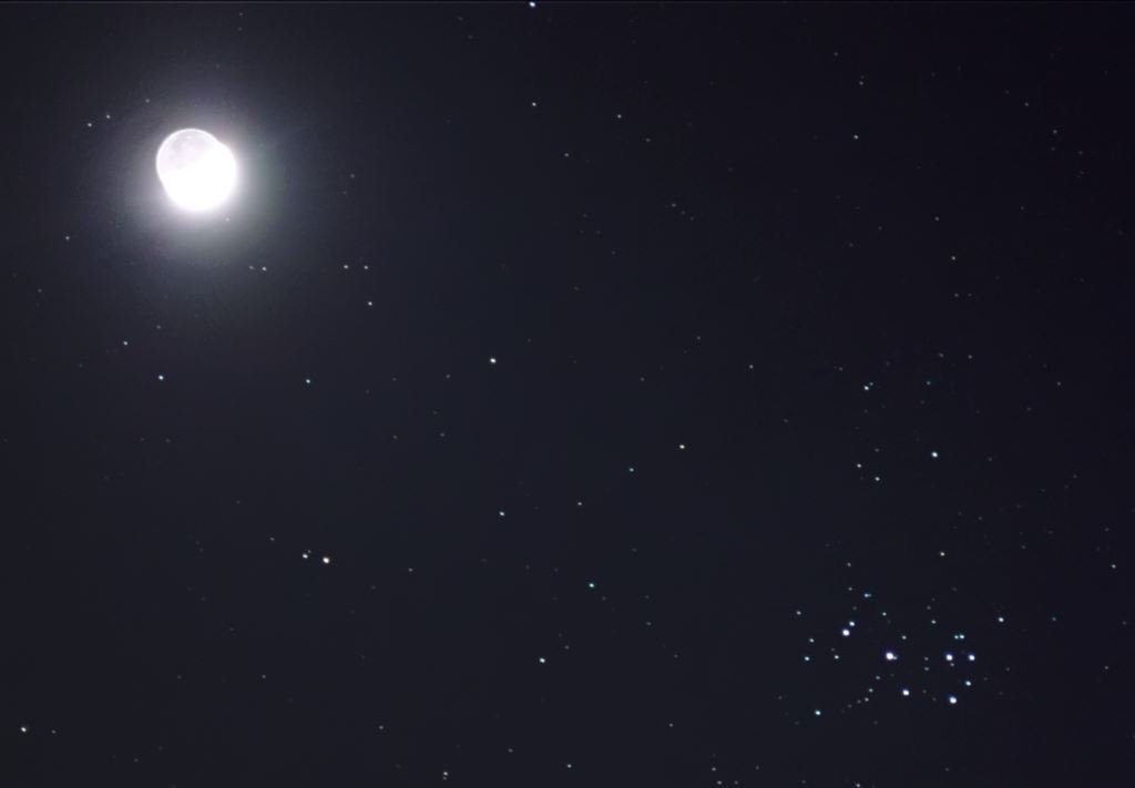 Dos de las vistas más hermosas del cielo nocturno se acercan esta noche: la Luna creciente y el cúmulo estelar de las Pléyades. Están altos en el oeste al anochecer, y se ponen después de medianoche.
