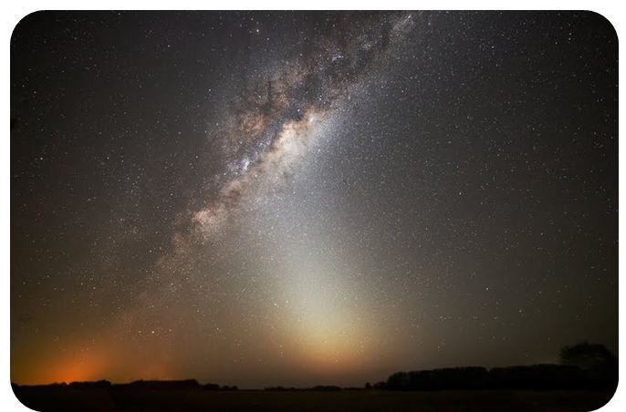 La luz zodiacal es una banda débil de luz, de forma casi triangular, que puede apreciarse en el cielo nocturno extendiéndose a lo largo del plano de la eclíptica donde se encuentran las constelaciones del Zodíaco. Cubre el cielo por completo aunque sólo es apreciable sobre el plano de la eclíptica y es responsable del 60% de la luz natural en una noche sin Luna. Está causada por la dispersión de la luz solar en partículas de polvo que se encuentran a lo largo de todo el Sistema Solar.