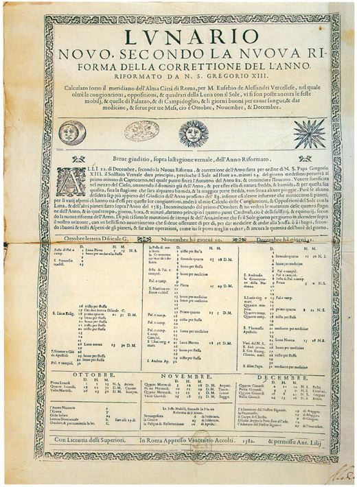 Diez días fueron omitidos del calendario, se decretó que el día siguiente al jueves, 4 de octubre 1582 (5 de octubre de 1582 en el viejo calendario) a partir de entonces sería conocido como (viernes) 15 de octubre de 1582.