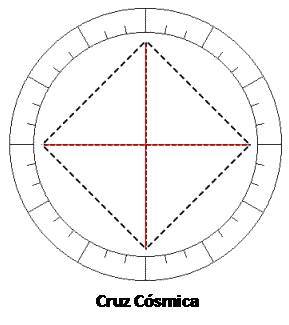 La Cruz Cósmica o Cruz Cardinal es una figura formada por cuatro cuadraturas ligadas entre sí, formando un gran cuadrado con dos oposiciones centrales formando una cruz. Las cuatro cuadraturas y las dos oposiciones nos hablan de una posible congestión de energías, de sobreesfuerzos o en contrapartida retenciones importantes.