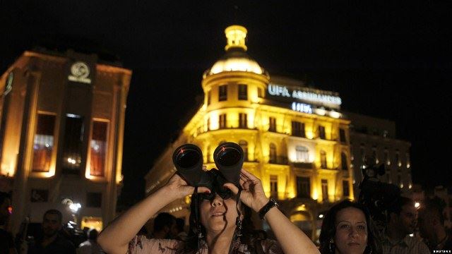 A diferencia de los eclipses de sol, los de luna pueden ser vistos a simple vista. Sin embargo, en Beirut muchos utilizaron binoculares para obtener una visión más nítida.