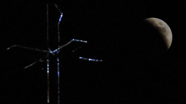 El eclipse total de luna más largo desde el 2000 fue visible en ciertas regiones de Europa, África, Asia y Oceanía. Una de las vistas más espectaculares sucedió a través de la «Mamlaka Tower» in Riyadh, capital de Arabia Saudita.