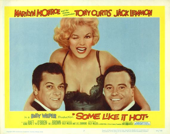 Dos músicos metidos en problemas y perseguidos por gánster (paranoia, estrés, desorientación) entrarán en una banda “muy especial” (transición, cambio de rumbo, ruptura del Status quo) para poder evadir los problemas (defensa de derechos) estos son elementos presentes en la trama contada en nuestra selección de hoy. Con Marilyn Monroe la encantadora Venus símbolo sexual de los 60’s. Y Haciendo un pequeño homenaje al recién fallecido Tony Curtis.