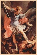 El arcángel San Miguel (su nombre significa en hebreo: ¿Quién como Dios?) es el jefe de los ejércitos celestiales y por lo tanto el príncipe de los ángeles, en las religiones judía, cristiana (excepto protestante) e islámica. Para los hebreos es el protector de Israel y patrono de la sinagoga. La religión cristiana lo considera como patrono y protector de la Iglesia Universal; y el primero de los siete arcángeles. También como virrey del cielo, acompañante de las almas a la eternidad (1 Tesalonicenses 4, 16), y el vencedor de Lucifer o Satanás. Por eso en el arte se le representa como un ángel con armadura de general romano, amenazando con una lanza o espada a otro ángel, al demonio o un dragón. En la literatura apócrifa judía, San Miguel ocupa una buena parte. Y su punto de partida, son las Escrituras auténticas (Daniel 12, 1). En el Libro de Enoc, se le menciona varias veces como «Gran Capitán», el misericordioso y muy paciente; y el santo ángel encargado de la mejor parte de la humanidad y del pueblo.