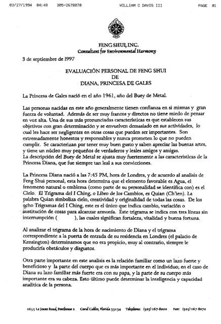 Astrológicamente Lady Di era una mujer muy sensible (Sol en Cáncer), participó en más de cien diferentes organizaciones de beneficencia, con amor y alegría (Ascendente en Sagitario), sus constantes picardías y su característico sentido del humor le ganaron la simpatía de su pueblo… (Medio cielo en Libra) gobernado por Venus (El Amor) y ocupado por Neptuno (La Magia) dándole ese carisma misterioso que la convirtió en la “Princesa del Pueblo”…